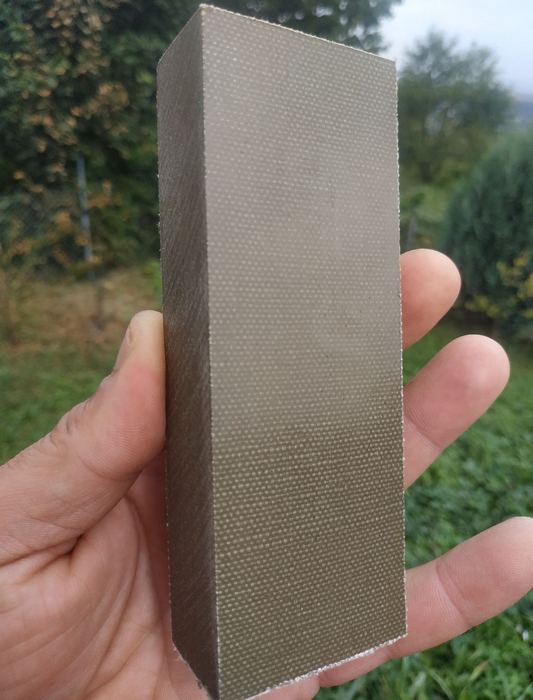 Брусок для руків'я ножа - Micarta Canvas - Green.Матеріал: Мікарта на основі Брезенту.Колір: Зелений/Оливковий.Розміри: 125 х 48-50 х 25 мм.Гарний та надійний матеріал, при обробці проявляються контрастні шари матеріалу.